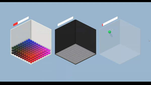 색을 나타내는 3개 값 RGB와 공간을 나타내는 3개 값 XYZ를 매칭시켜면 재밌겠다는 생각이 들어 만들어본 toy project, RGB in XYZ